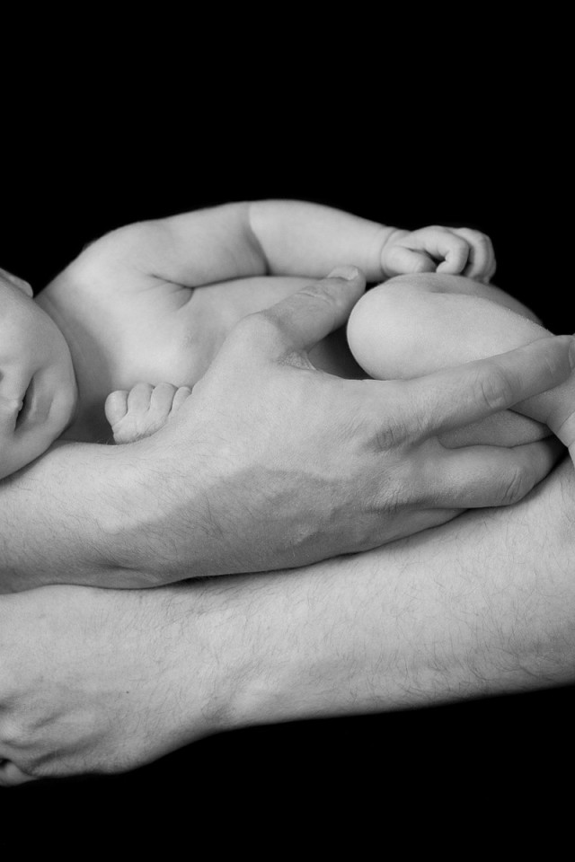 Черно белые обои маленького ребенка на руках - iPhone 4/4S/iPod