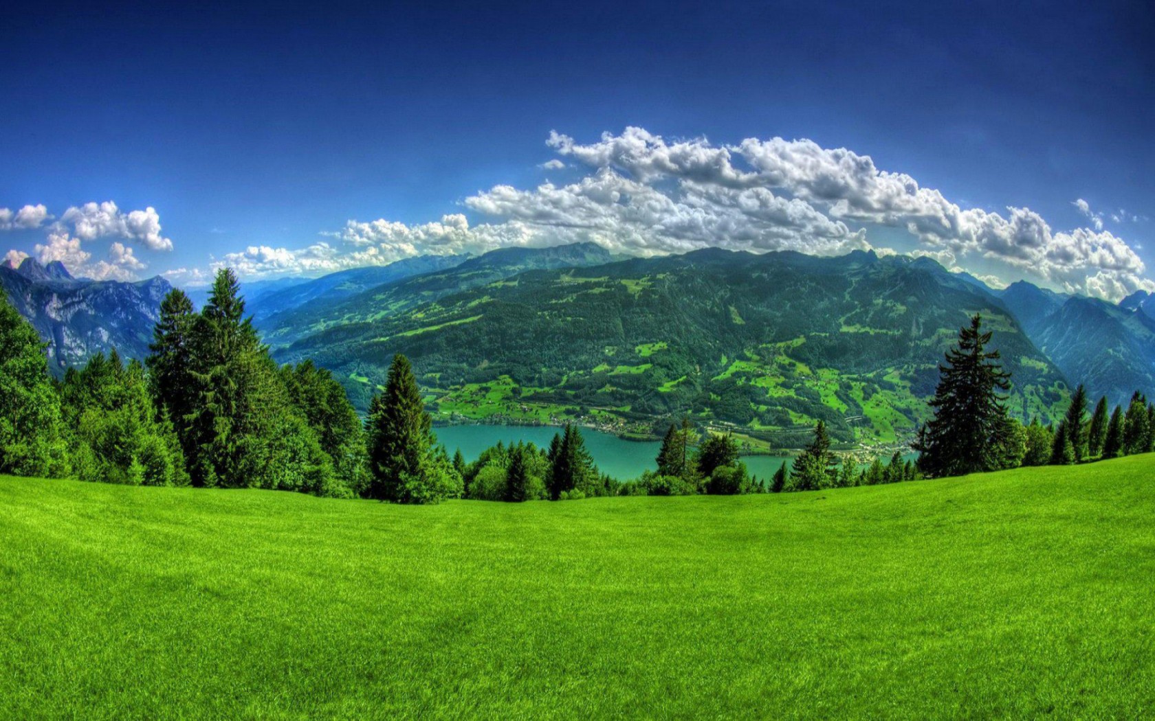 Швейцария, пейзажи, Горы, Небо, Валенштадт, трава высокого разрешения фоны - 1680x1050