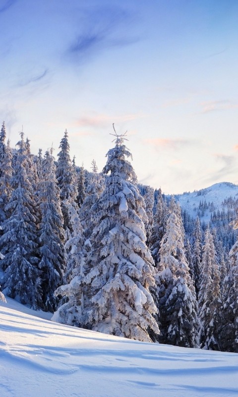 Широкоформатная заставка с красивым зимним лесом - 480x800