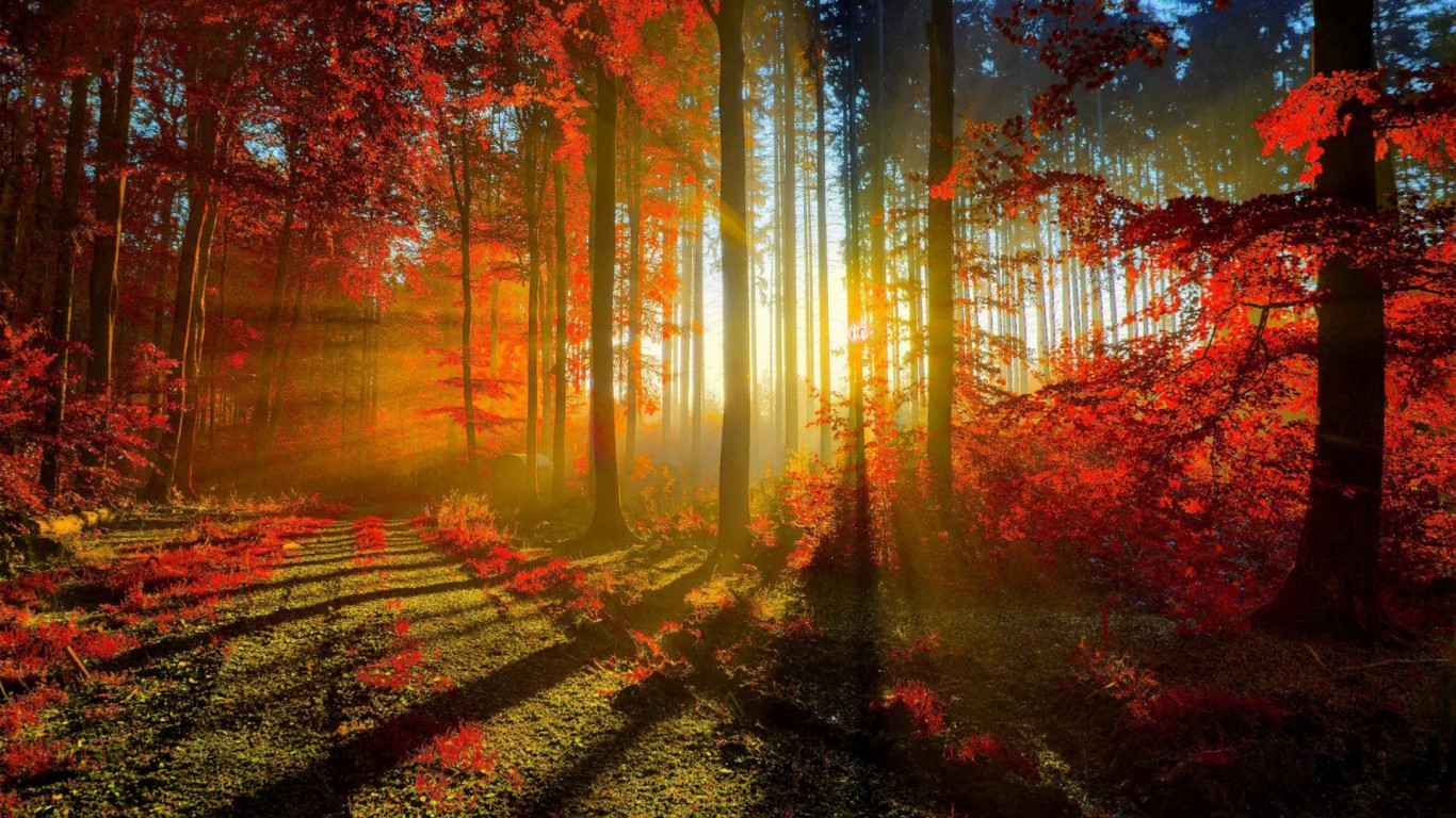 Широкоформатные обои осень красная листва - 1366x768