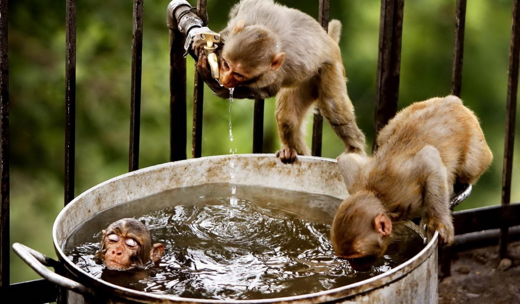 веселые обезьяны в ведре глупо купаются обои hd - 1024x600