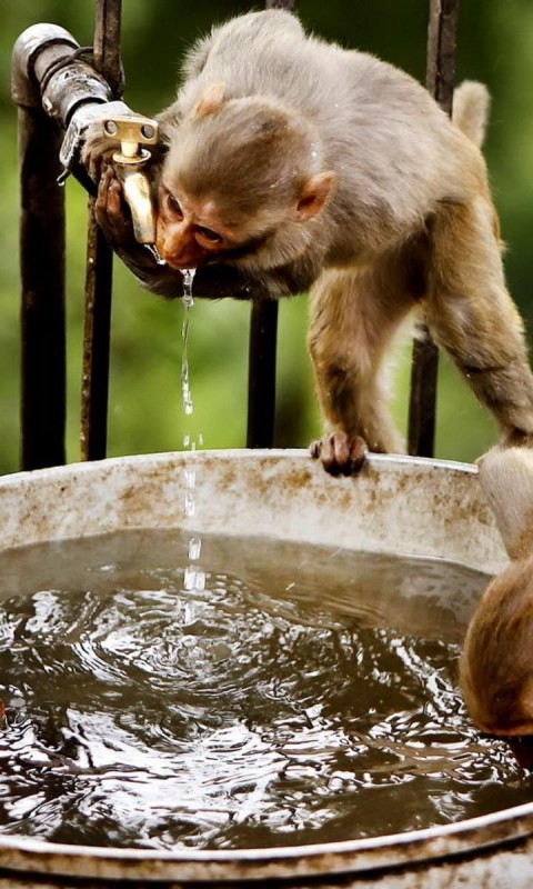 веселые обезьяны в ведре глупо купаются обои hd - 480x800