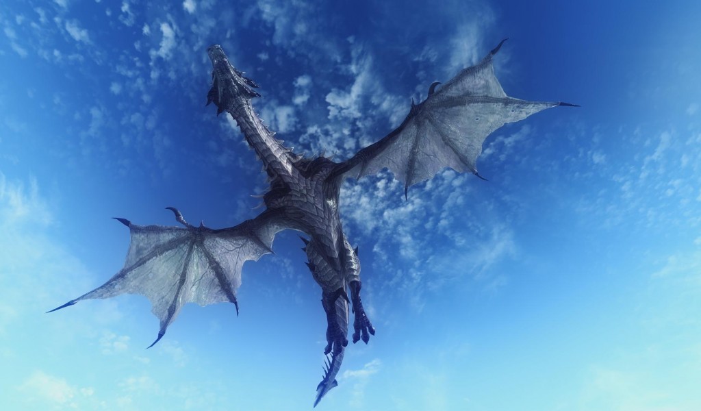 дракон, небо, полет, 3d - 1024x600