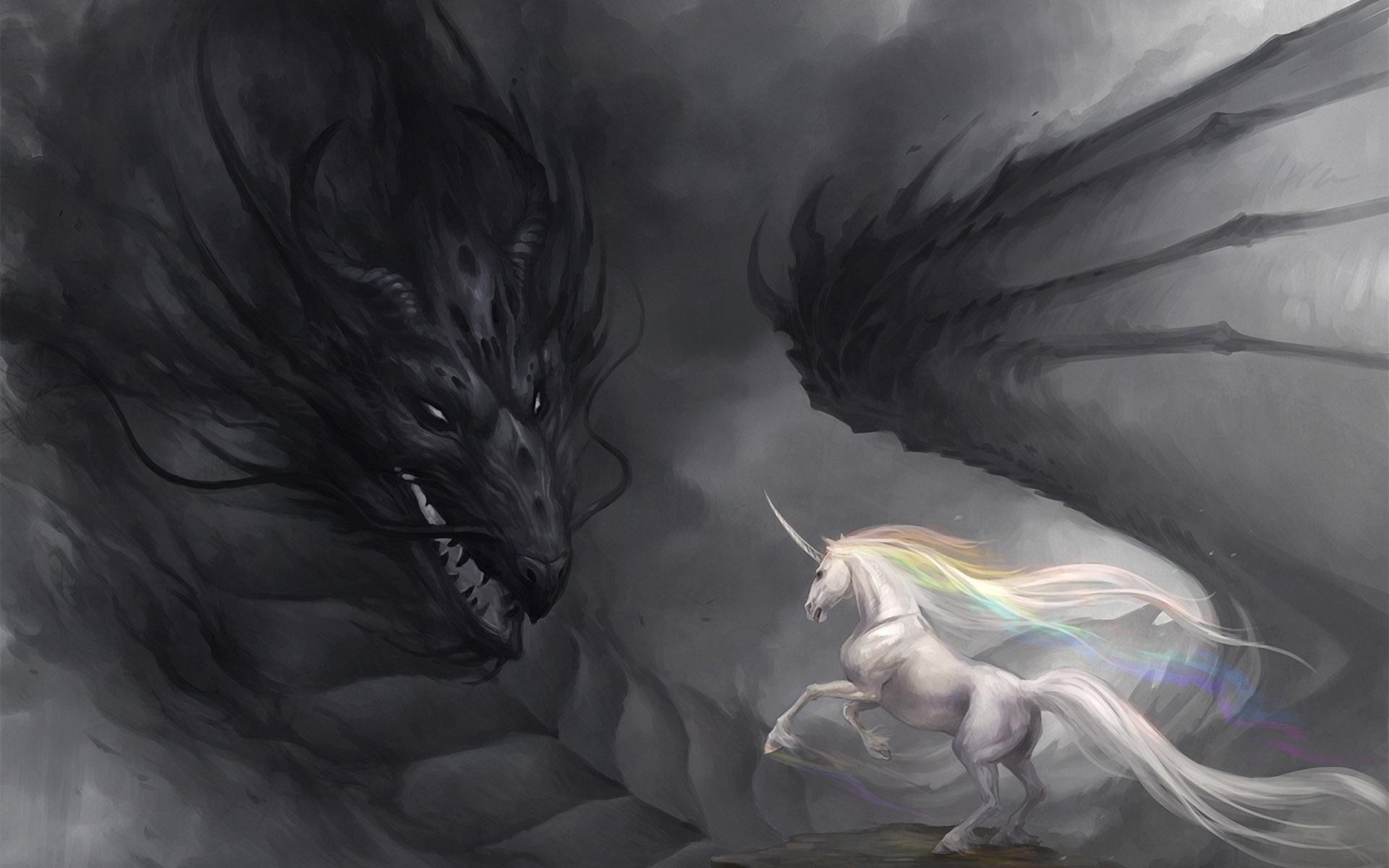 единорог и дракон заставки бесплатно - 1920x1200
