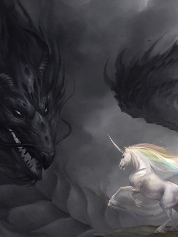 единорог и дракон заставки бесплатно - 360x480