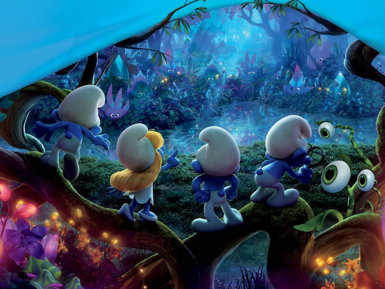 мультфильм, смурфики, смурфы, синие, затерянная деревня, смурфетта, растяпа, благорозумник, HD обои, фото - 1280x960