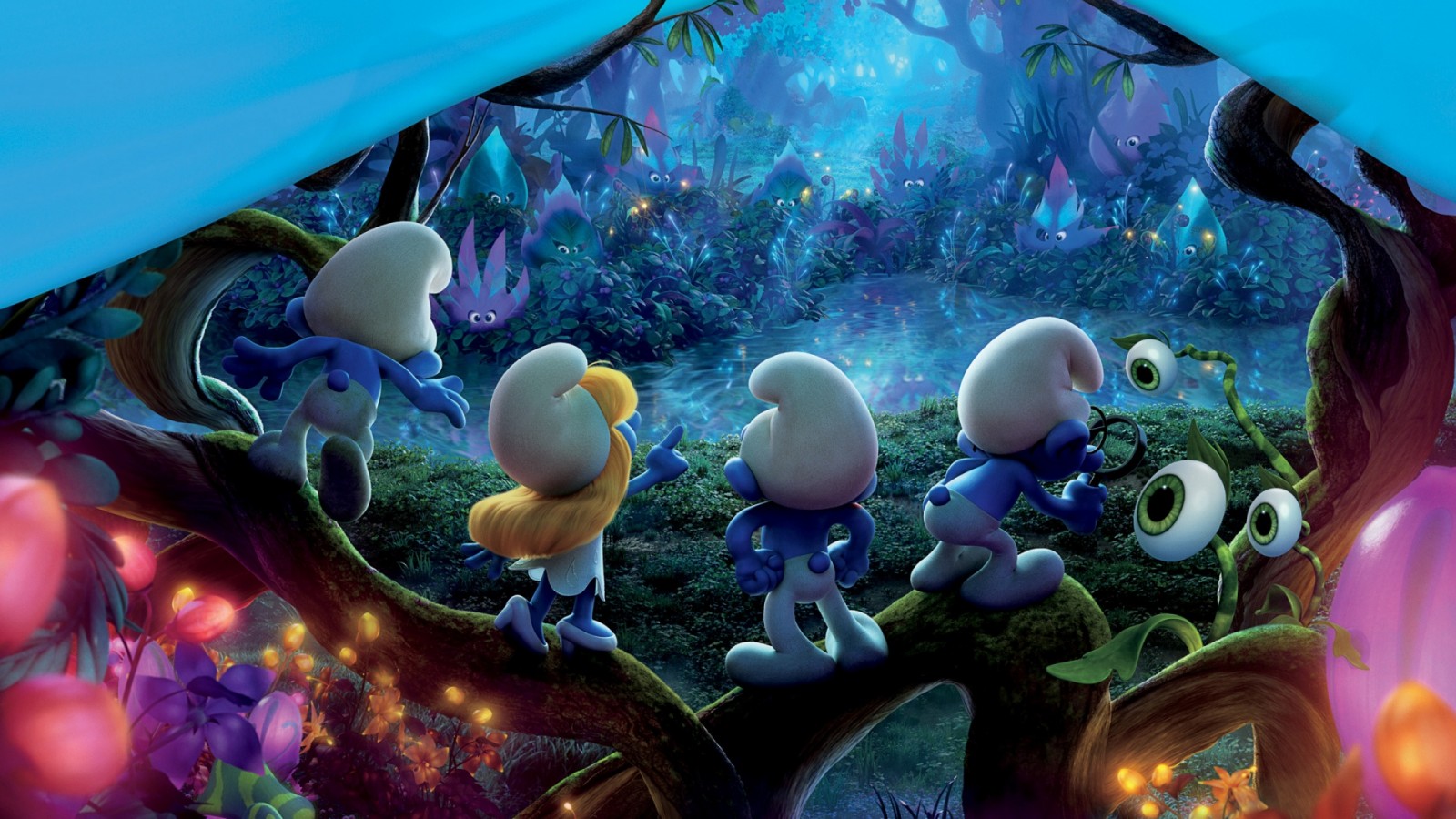 мультфильм, смурфики, смурфы, синие, затерянная деревня, смурфетта, растяпа, благорозумник, HD обои, фото - 1600x900