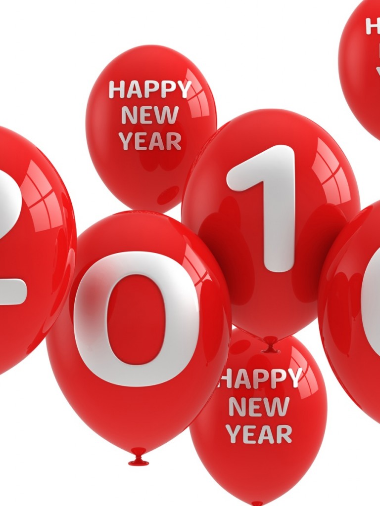 2016, новый год, красные шары, шарики, фон - Non-retina iPad