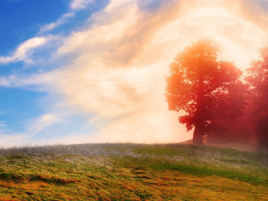 2560x1600, природа, деревья,-красные листья, облака - 1024x768