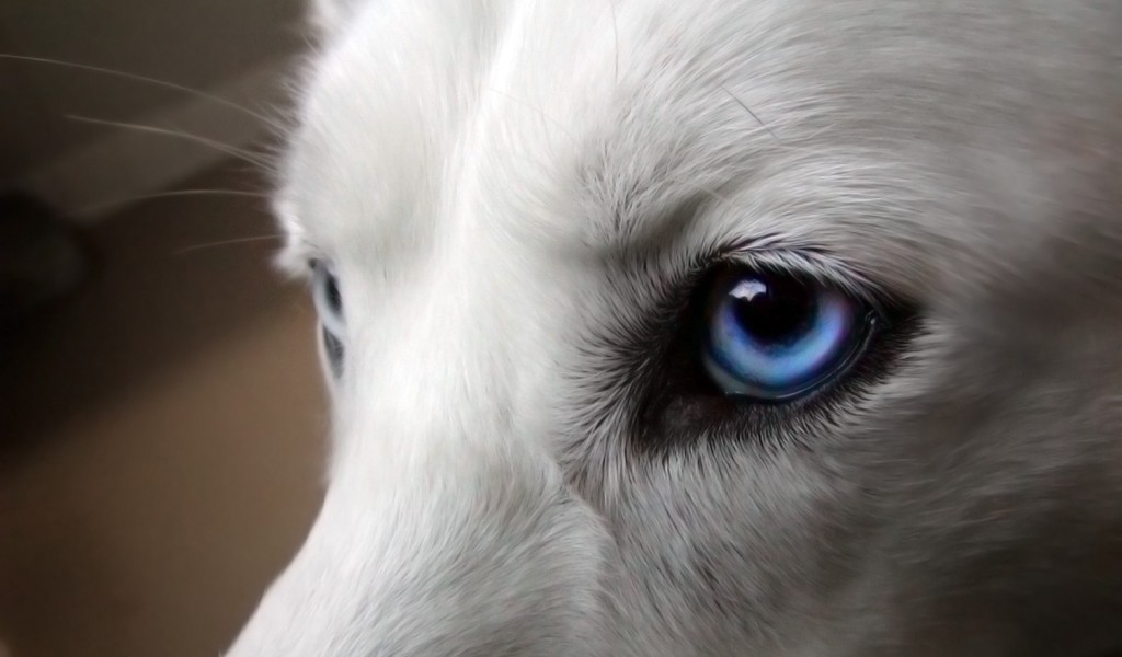 Белый волк с голубыми глазами - 1024x600