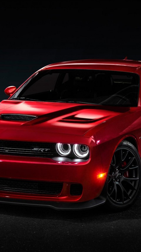 Dodge Challenger SRT Hellcat 2015 красный автомобиль обои - 480x854
