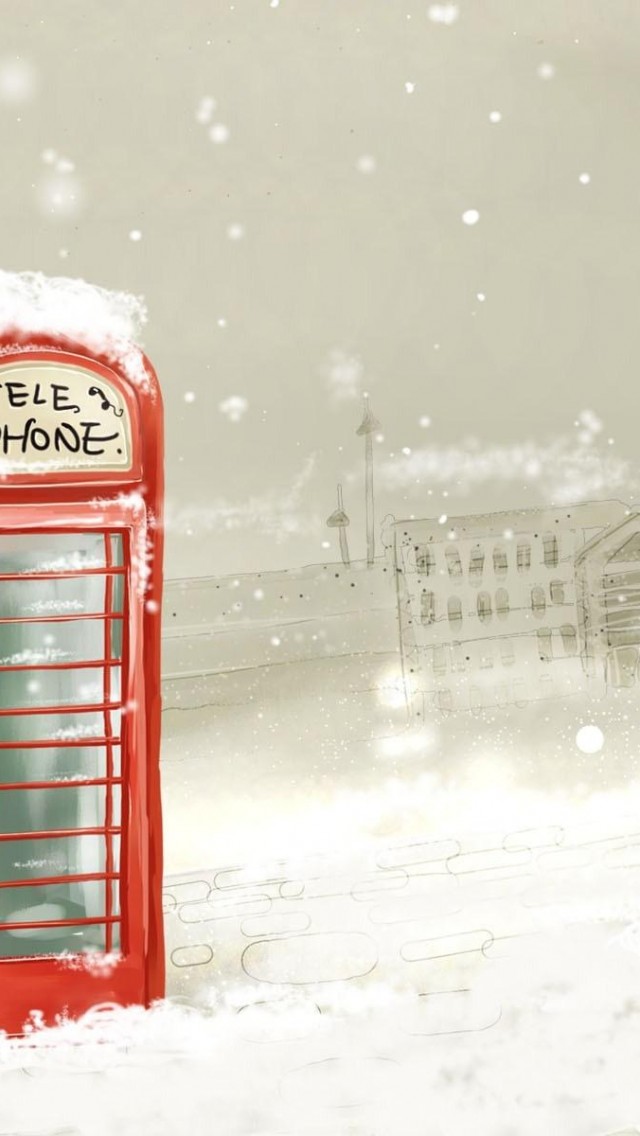 Telephone winter snowflakes snow lights city paint art wallpapers - iPhone 5/5S (& iPod)